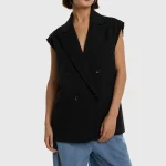 - Conçu avec une fermeture boutonnière à double boutonnage et des bords coupés bruts à l’emmanchure.