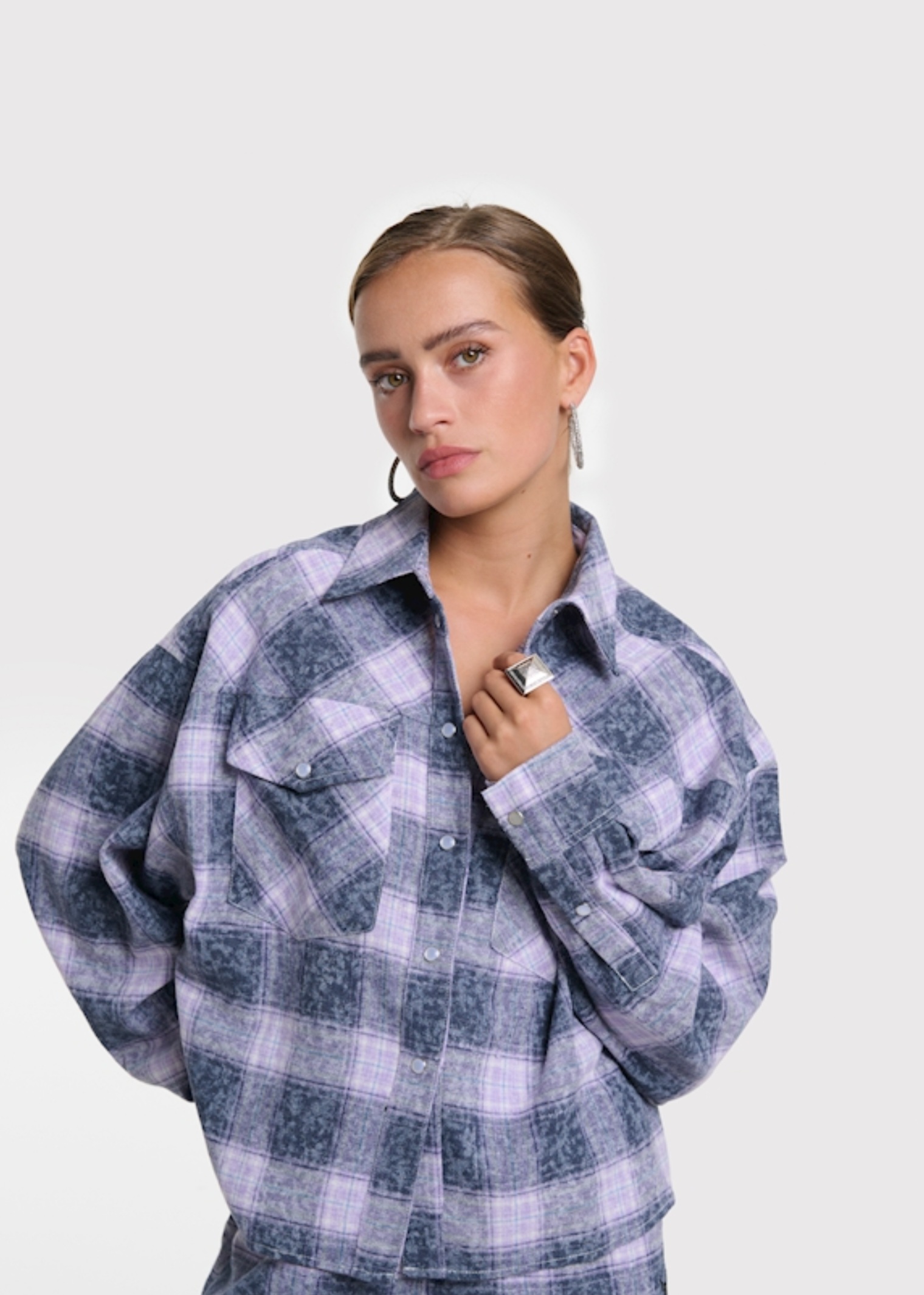LADIES WOVEN BLEACHED CHECKEN BLOUSE