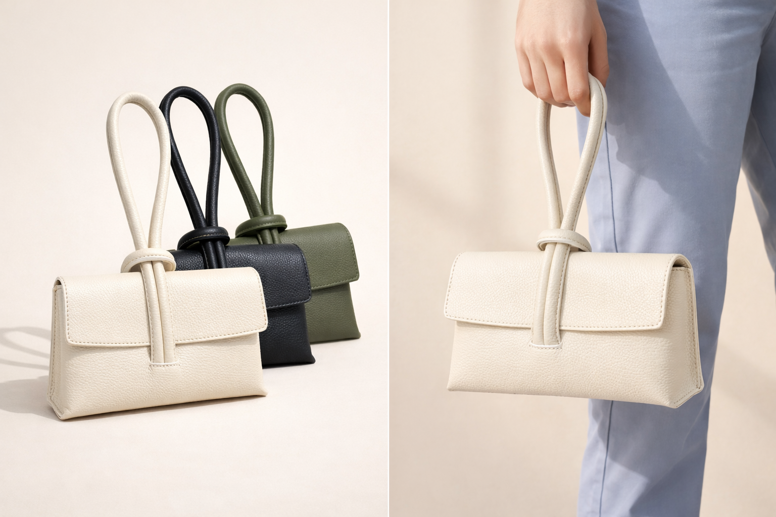 silhouette épurée et son design structuré. Son anse signature nouée apporte une touche moderne et distinctive, parfaite pour sublimer toutes tes tenues.