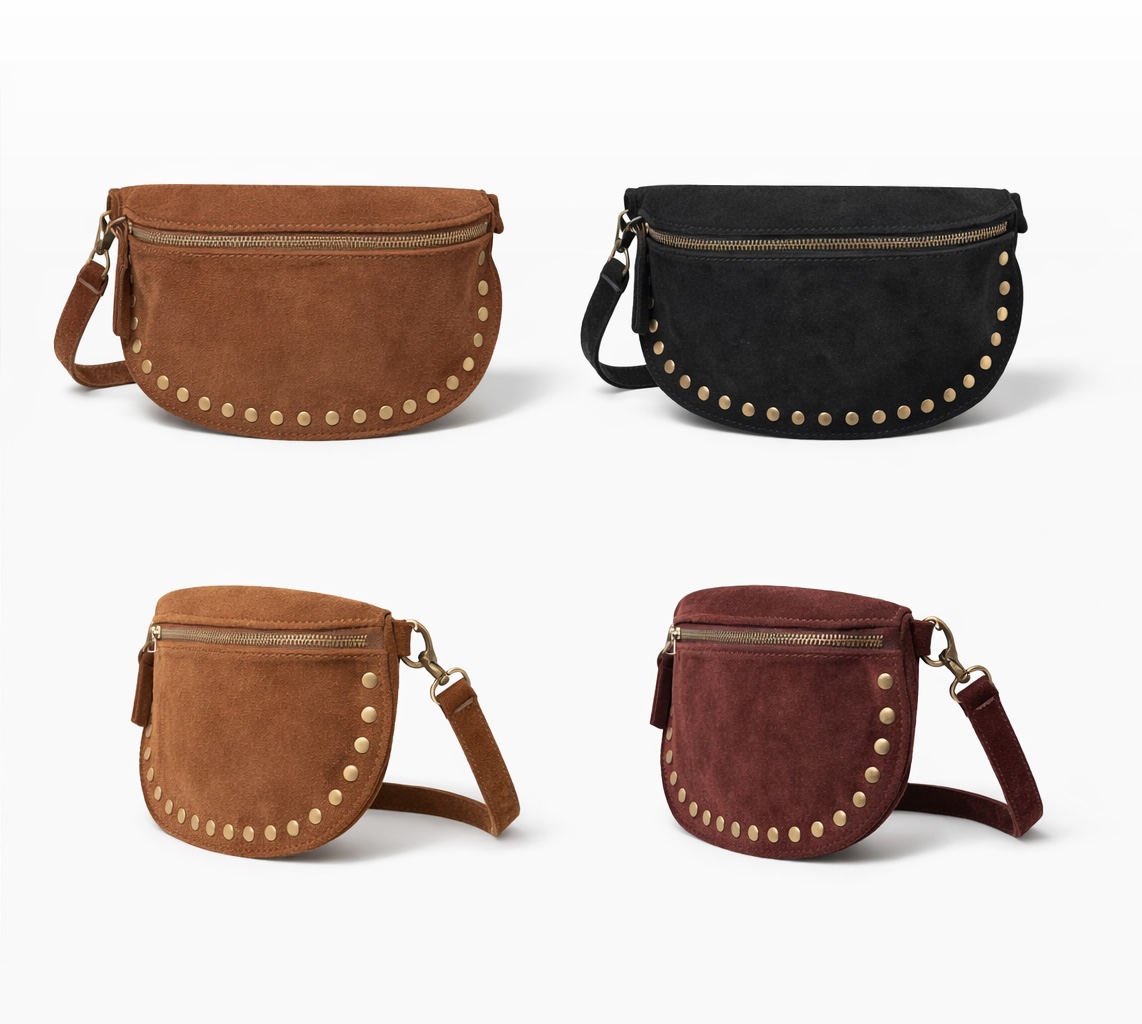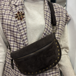 rivets dorés, apporte une touche chic et moderne, idéale au quotidien comme en sortie. Sa matière douce effet daim offre un rendu chaleureux et qualitatif, tandis que sa forme ergonomique permet un porté confortable en bandoulière.