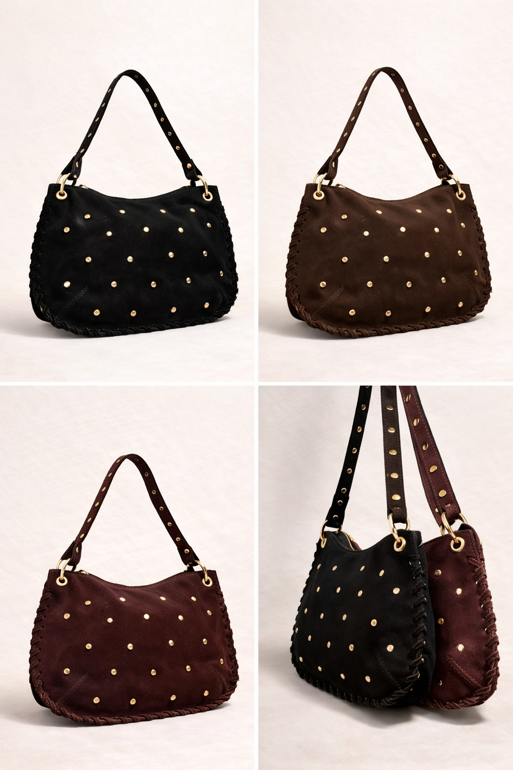 audacieuse. Matière daim, sublimé par des clous dorés délicats, en fait une pièce forte qui attire le regard tout en restant élégante. Souple et léger, il épouse naturellement votre silhouette pour un porté confortable au quotidien.