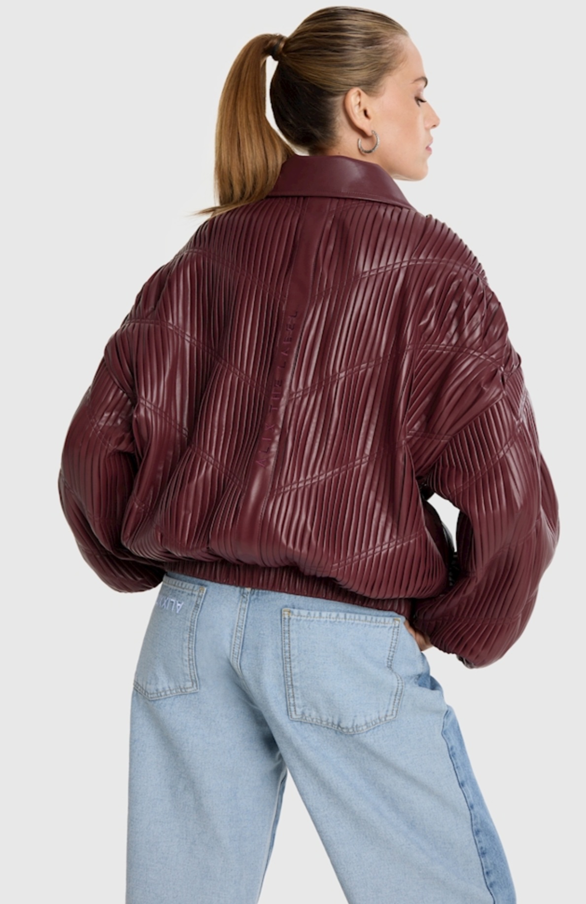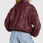 WOVEN PLEATED FAUX LEATHER BOMBER