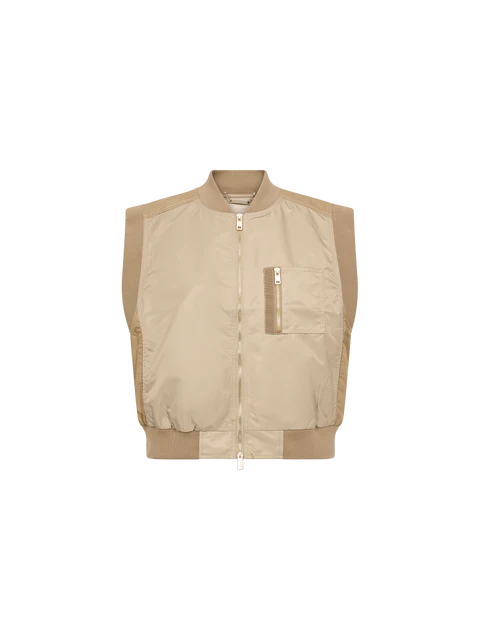 VESTE SANS MANCHES EN DEUC COLORIS  – KAKI/BEIGE-